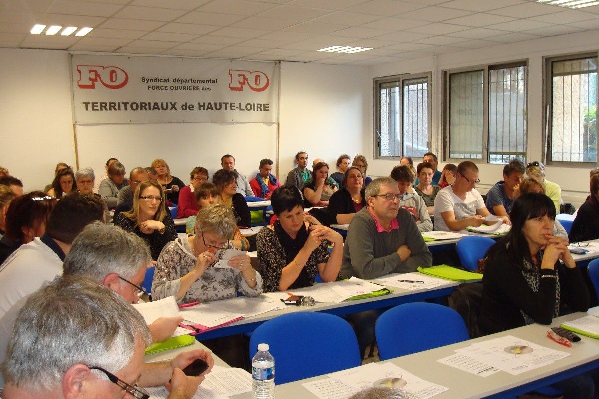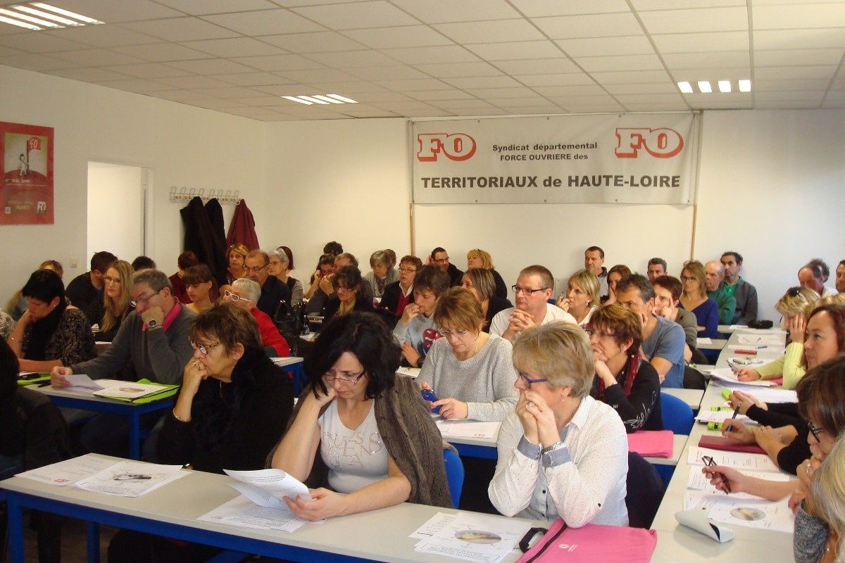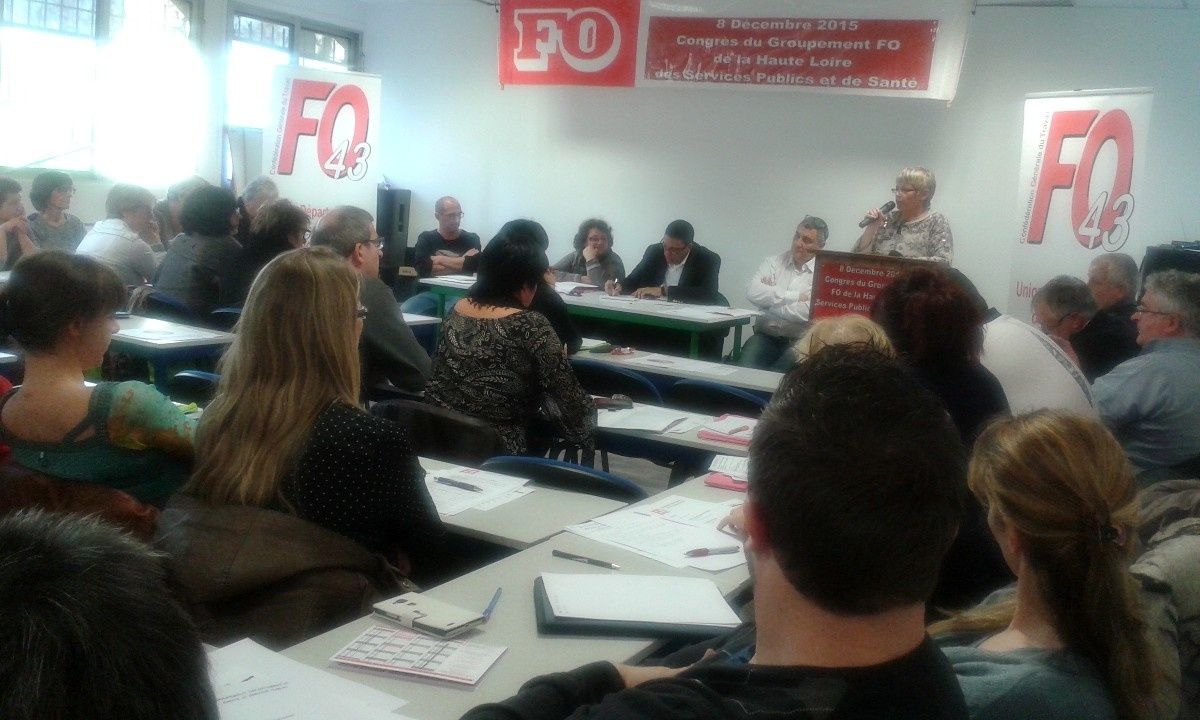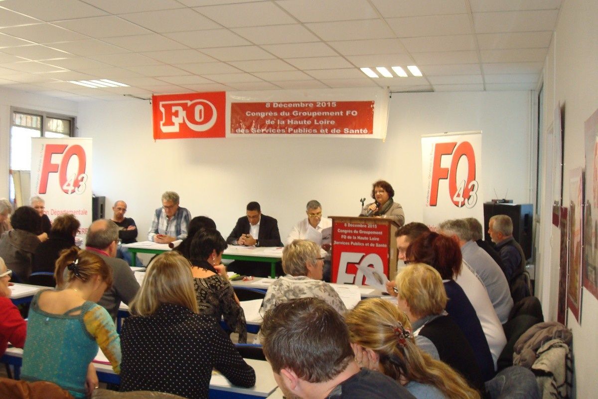 Le groupement départemental des Services Publics et de Santé FO a tenu son congrès le mardi 8 décembre, dans les locaux de l’Union Départementale au Puy, avenue de Saint Flory. 80 personnels des établissements de santé publics et privés, des collectivités locales avaient fait le déplacement pour l’occasion. C’est donc devant une salle comble et attentive que Marie Christine Echaubard a présenté son rapport d’activité.